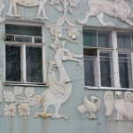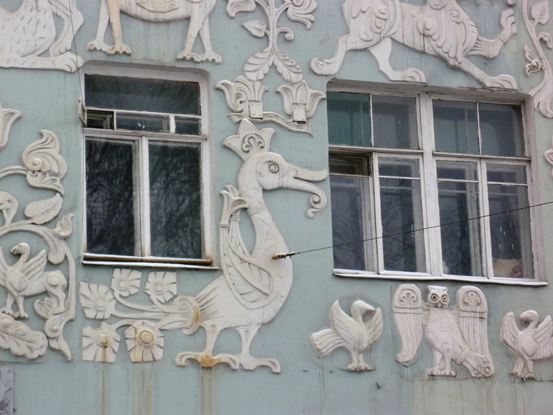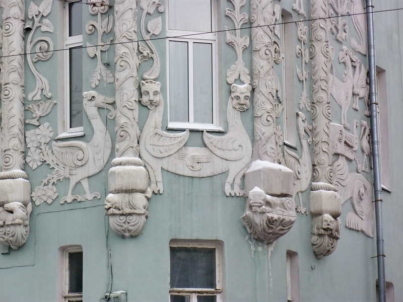 Героев средневекового бестиария можно увидеть на здании Славяно-греко-латинской академии