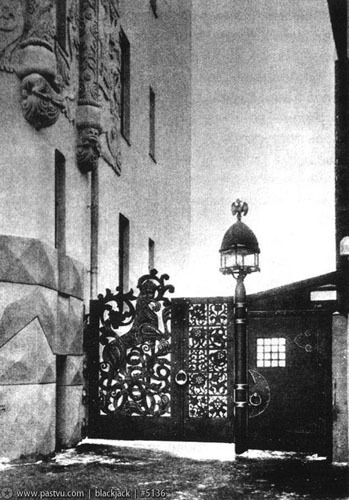 Семиэтажный двухподъездный кирпичный жилой дом бледно-зеленого цвета.Построен в 1908-1909 гг. по проекту архитектора Л. Кравецкого и инженера-строителя П.К. Микини.Образцами фантастических животных, птиц и деревьев послужили барельефы Дмитриевского собора во Владимире, который С.И. Вашков считал вершиной владимирского зодчества. Первоначально дом был четырехэтажным с шатровыми башнями по краям. В 1945 году по проекту архитектора Б.Л. Топаза дом был надстроен еще двумя этажами. При этом пропал ряд верхних барельефов, были уничтожены балконы второго этажа. Но все же надстройка была проведена достаточно умело, и верхние этажи особо не выделяются на фоне старого объема дома. В интерьерах сохранились элементы декоративного убранства – решётки лестниц, двери, рельефы над ними, лепные украшения плафонов в квартирах.