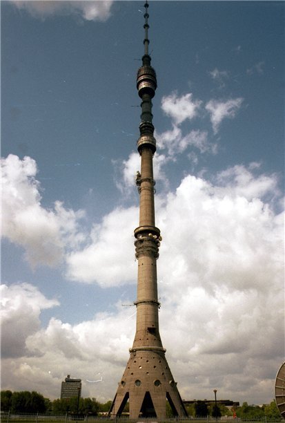 Останкинская башня — телевизионная и радиовещательная башня, которая занимает 4 -ое место по высоте среди свободно стоящих сооружений. Её высота 540 метров. Решение о строительстве телебашни было принято в 1957 году, приступили к возведению в 1963 году, а закончено было в 1967 году. Проект башни придумал архитектор Н.В.Никитин за одну ночь. На строительство башни ушло 10 лет.