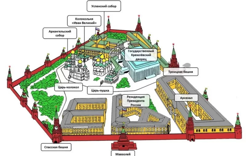 Башни Кремля с указанием их прежнего названия, в порядке года строительства, выделены башни с воротами: