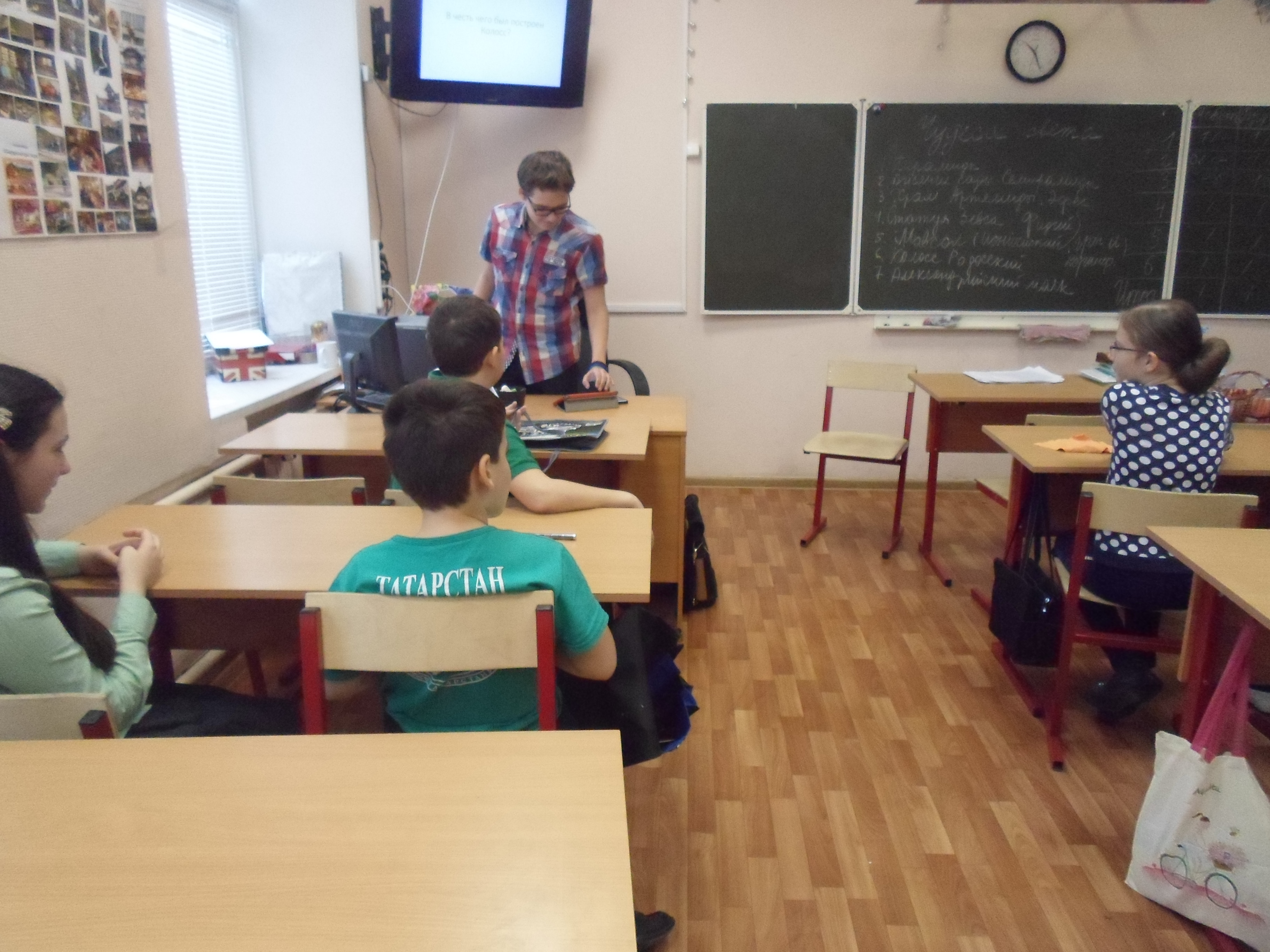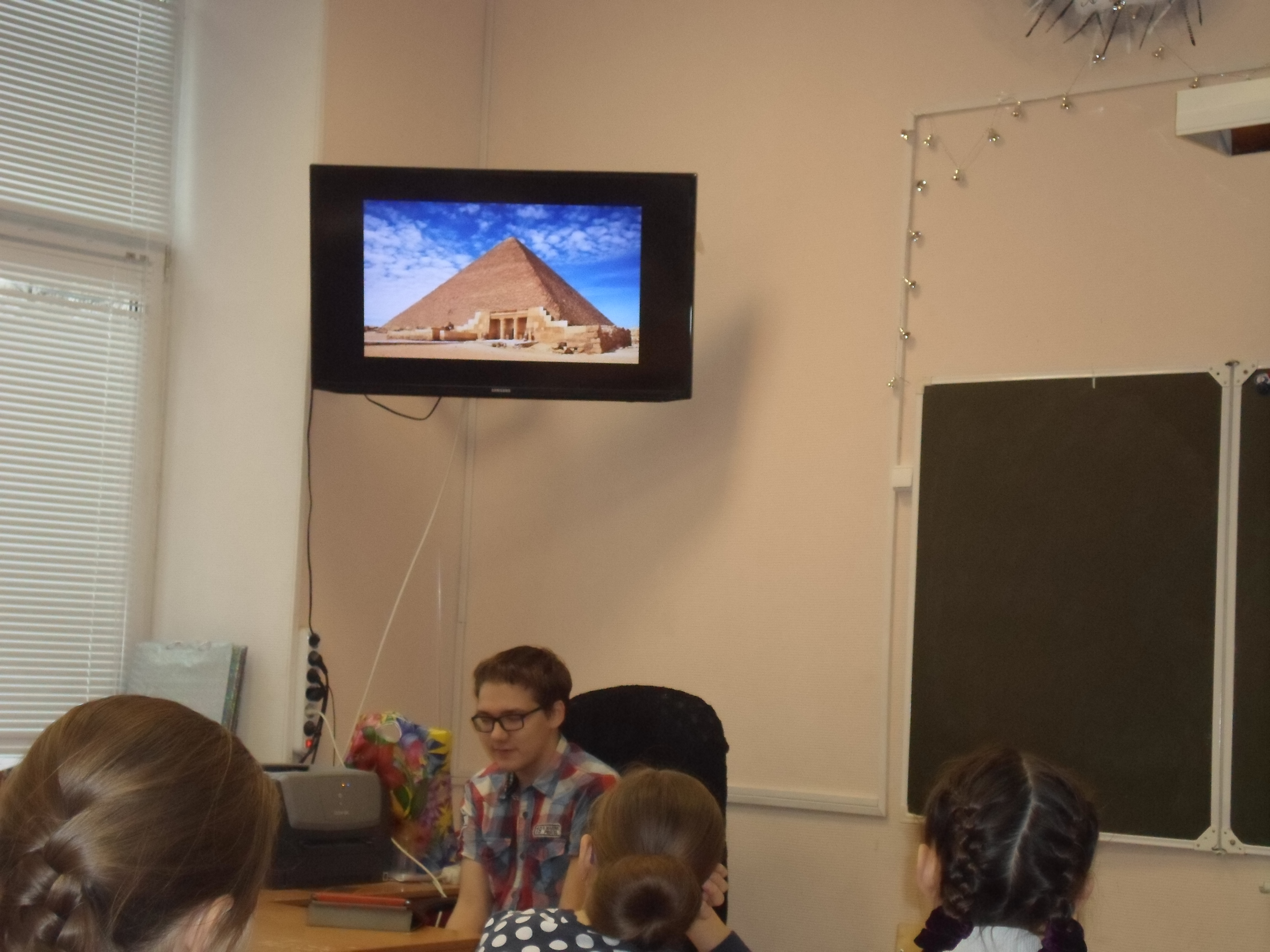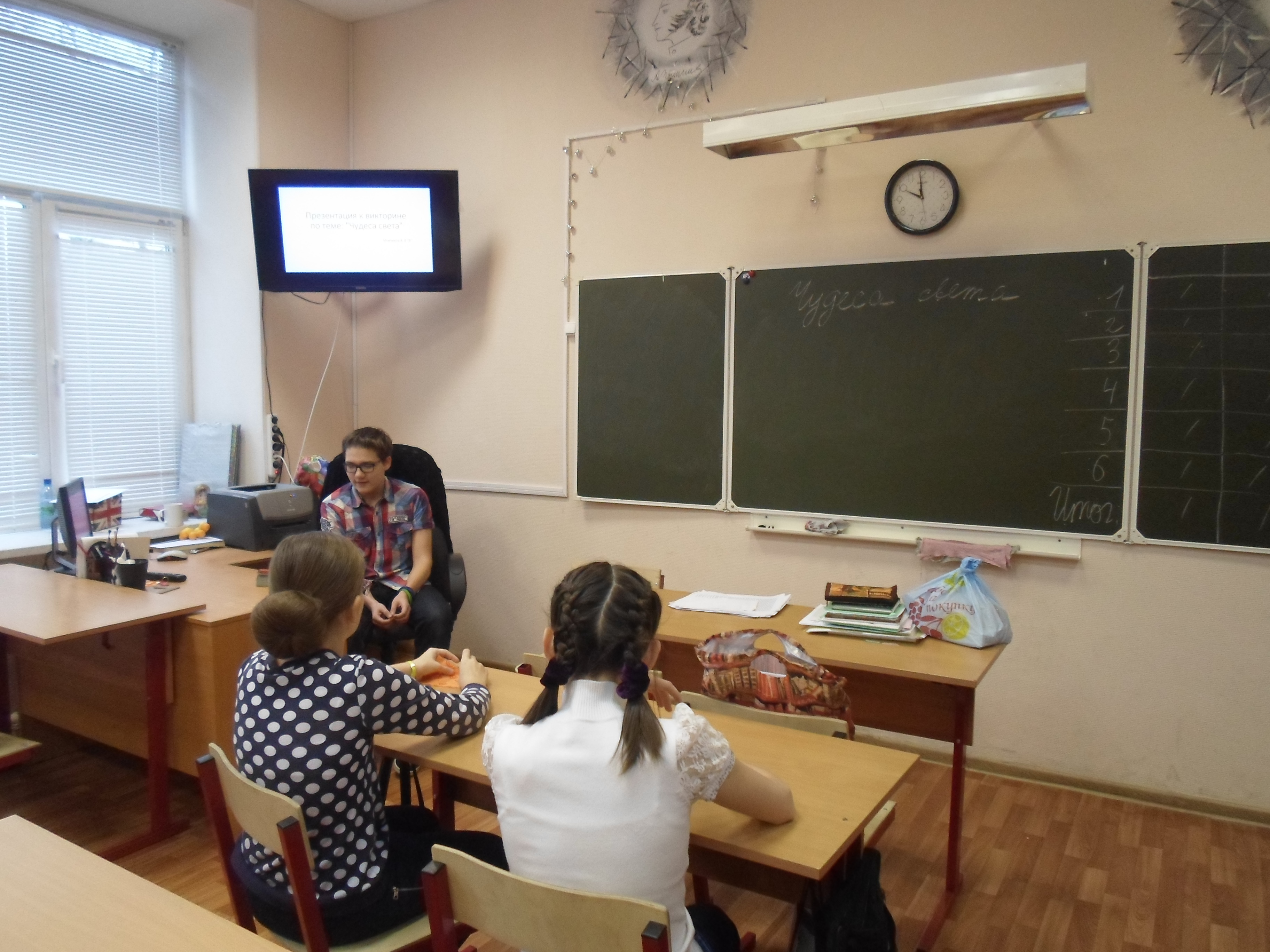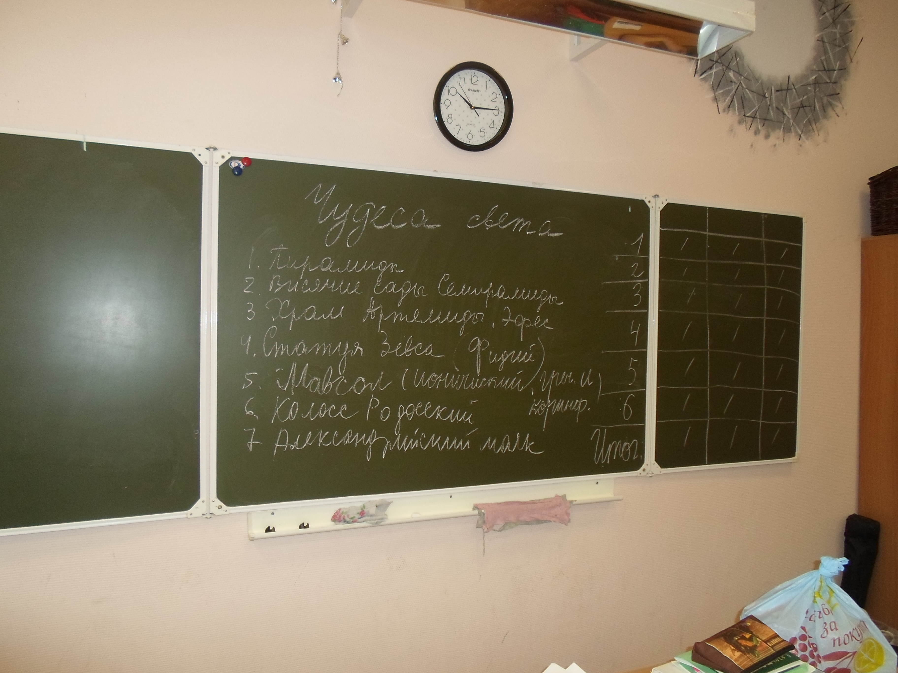 Сегодня Алексей провёл урок по элективным курсам "Весёлая кисточка". Он рассказал нам о семи чудесах света (это тема его проекта):
